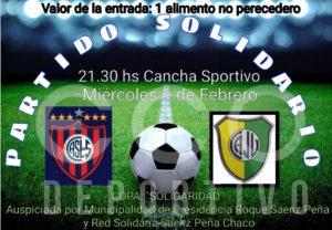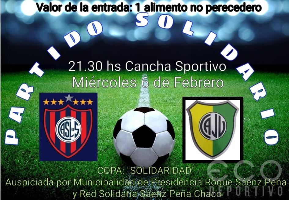 Juventud Unida y San Lorenzo protagonizarán un partido de carácter solidario, con la finalidad de recolectar alimentos no perecederos que permita abastecer a distintos merenderos de Sáenz Peña. El juego será el miércoles 6 de febrero en el estadio de Sportivo, a las 21,30, y estará en juego la “Copa Solidaridad” aportada por el municipio termal.