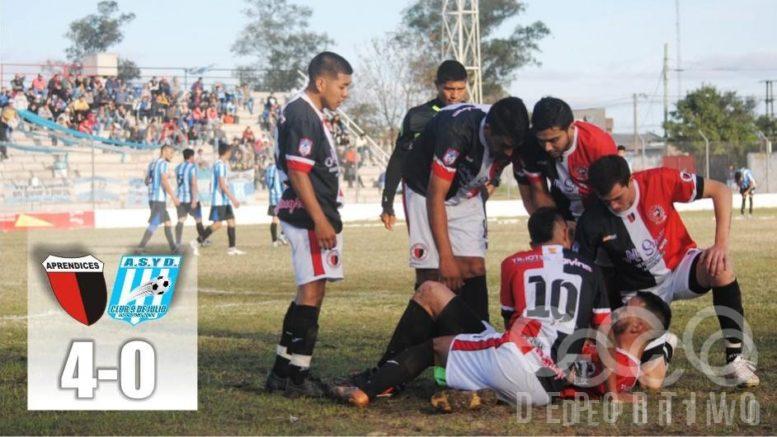Aprendices mantuvo la hegemonía de los equipos de la Zona “A”, con su goleada sobre 9 de Julio por 4 a 0 en partido de ida de los cuartos de final del Torneo Apertura “Gustavo Valdivia” de la Liga Saenzpeñense de Fútbol. El conjunto de Los Frentones terminó con dos hombres menos.