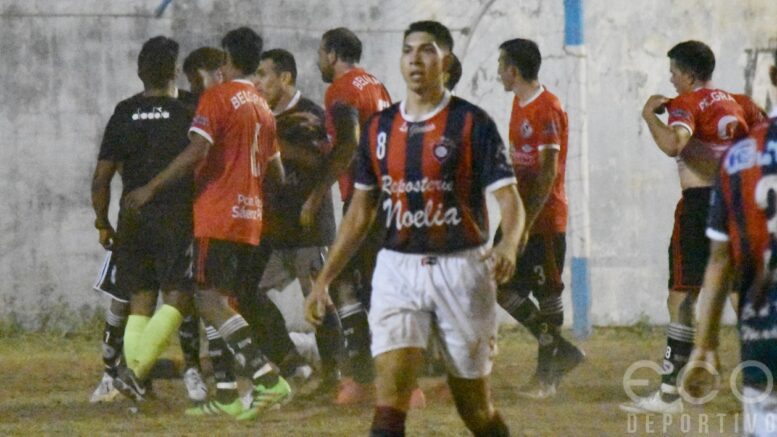 Ese minuto 38 fue la bisagra de un encuentro que hasta allí se desarrollaba, dentro de todo, por carriles normales. El “santo” reclamó falta sobre el arquero Pallares en el momento del gol, y luego de que el asistente Michalik llamara al árbitro Torres, unos manotazos derivaron en la expulsión del propio Maidana (B) y de “Hule” Martínez (SL).