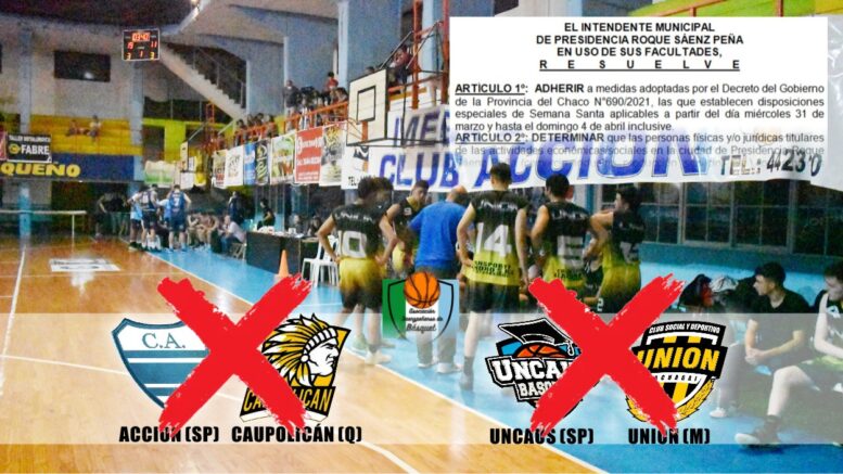 “Dado la adhesión al decreto provincial, la Asociación Saenzpeñense de Basquet decide suspender la presente fecha en todas las localidades, ya que adheridos o no los municipios, los juegos requieren el traslado de árbitros y fiscalizadores, no se puede quedar expuestos a futuras sanciones. Esperemos que todo mejore y se pueda volver con una cuidada normalidad. Sigamos cuidándonos”, expresa el comunicado oficial.