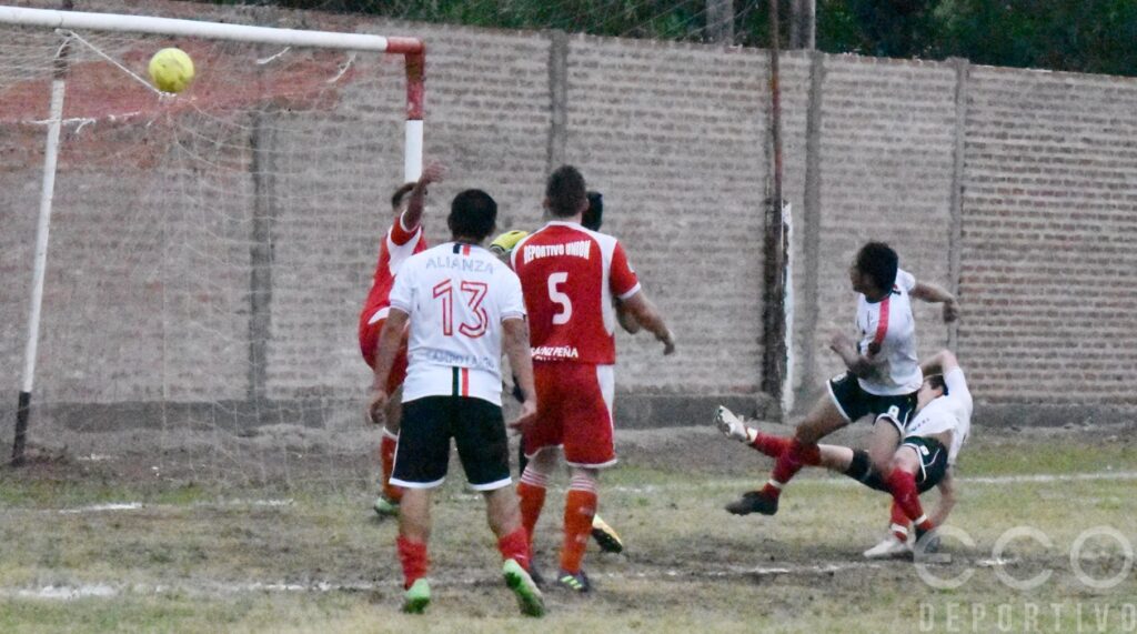 Aprovechando la superioridad numérica Alianza empezó a florearse y llegaba con más frecuencia al área rival, pero no definía. Así, a la media hora Lucas Alegre encaró por izquierda y cuando podía definir prefirió dar un pase al medio que José Sáez mandó al córner; y enseguida Norberto Jara la picó ante el arquero unionista pero el balón se fue apenas alto.