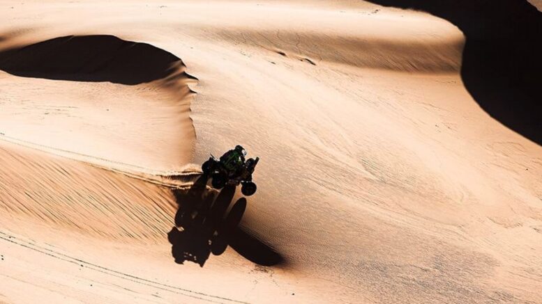 El domingo había sido complicado para el “Yaguareté”, porque había tomado un rumbo equivocado y perdió mucho tiempo. A ello le sumó que los vehículos de mayor porte le dieron alcance y complicaron aún más su tránsito por el territorio saudí. Todo ello originó mayor desgaste para él y para el cuatriciclo, que fue exigido más que de costumbre.