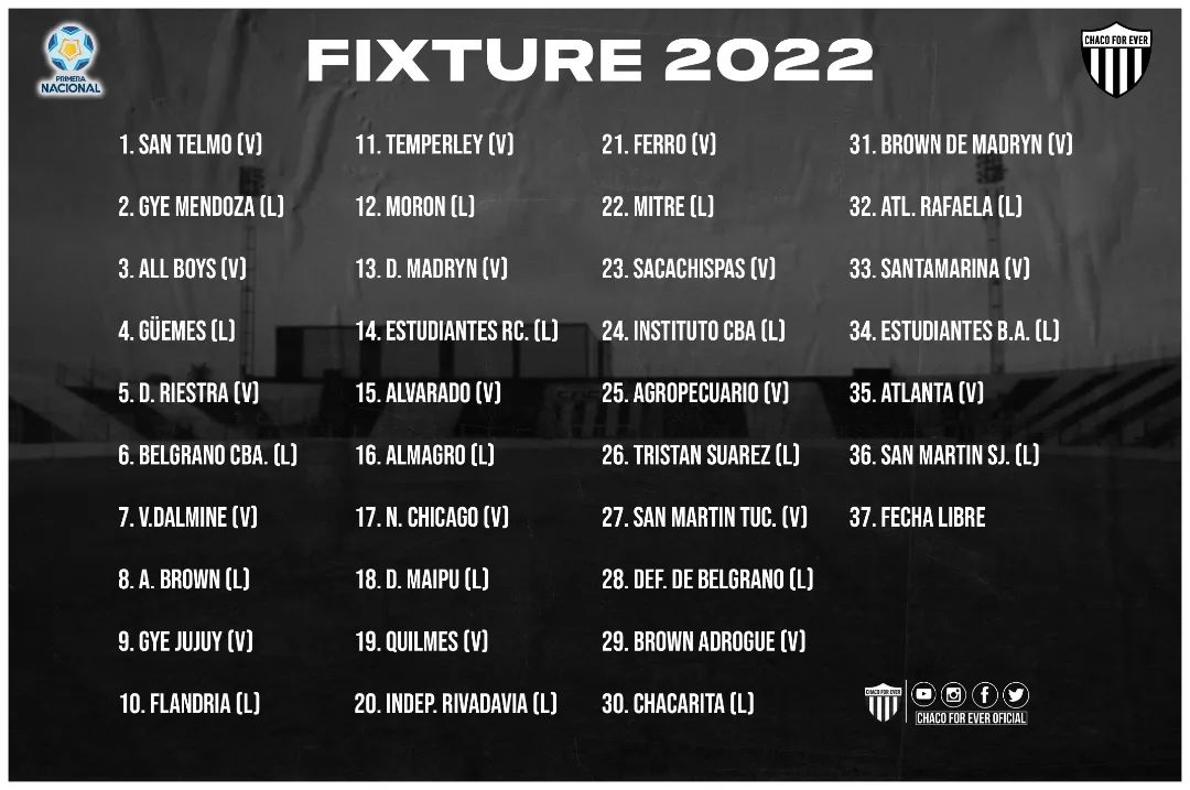 La segunda división del fútbol argentino dio la bienvenida a un Chaco For Ever que se viene preparando con varios refuerzos, bajo la conducción técnica de Daniel Cravero. El torneo se llamará Primera Nacional “Malvinas Argentinas”, al cumplirse 40 años de la gesta en las islas, en 1982, y se jugará a una sola rueda todos contra todos.