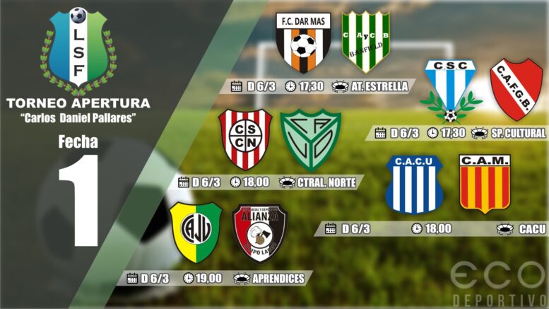 Con cinco partidos proseguirá este domingo la primera fecha del Apertura 2022 “Carlos Daniel Pallares” – Copa MyM Petrol, que tiene pendiente el duelo de Centro de Avía Terai con Sportivo. Los duelos serán en Concepción del Bermejo, Pampa del Infierno, Campo Largo, Castelli y Sáenz Peña.