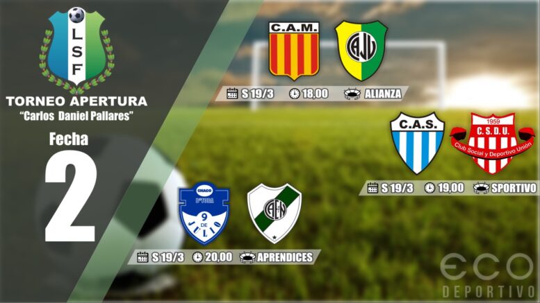 La segunda fecha del Torneo Apertura “Carlos Daniel Pallares” Copa MyM Petrol de la Liga Saenzpeñense de Fútbol proseguirá este sábado con tres partidos, de los cuales La Montenegrina y Juventud se medirán en Campo Largo, y los dos restantes en Sáenz Peña: Sportivo ante Unión, y 9 de Julio del barrio Toba con Estrella del Norte.