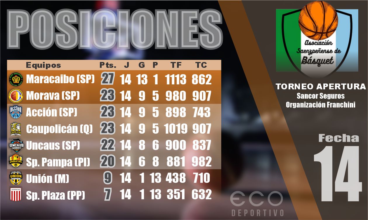 Caupolicán fue claro dominador de las acciones y se impuso sin mayores sobresaltos sobre Uncaus por 95 a 64 en partido que cerró la fase regular del Torneo Apertura “Sancor Seguros – Organización Franchini” de la Asociación Saenzpeñense de Básquet. Ambos volverán a enfrentarse en la Reclasificación, previo a las semifinales.