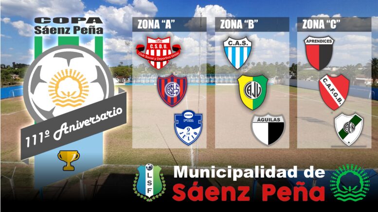 La Copa “111º Aniversario de Sáenz Peña” ya tiene sus grupos y su partido inaugural. El ya tradicional certamen organizado por el municipio local, con la fiscalización de la Liga Saenzpeñense de Fútbol, comenzará el martes 7 de marzo con el duelo de San Lorenzo frente a 9 de Julio del barrio toba.