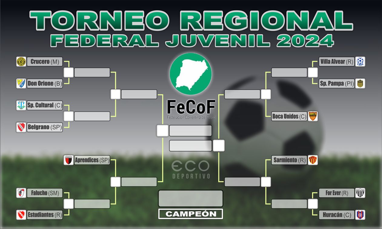 En reunión concretada en el Club Don Orione de Barranqueras se terminaron de confeccionar los cruces de la etapa final del Torneo Regional Federal Juvenil, que cuenta con la participación de cuatro equipos de la Liga Saenzpeñense de Fútbol. Aprendices esperará rival en cuartos de final; Cultural recibirá a Belgrano, y Pampa visitará a Villa Alvear en octavos.