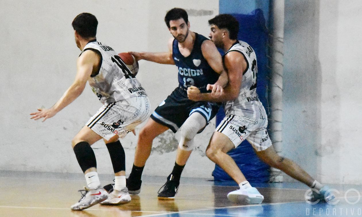 La segunda jornada de las revanchas del certamen organizado por la Federación Chaqueña de Básquetbol registró en Sáenz Peña el atractivo duelo de Acción con Alvear, con victoria del “celeste” por 71 a 64 tras un mejor cierre. Sebastián Ramos (17) fue el goleador, y en la visita se destacó Eduardo Spalla (16).