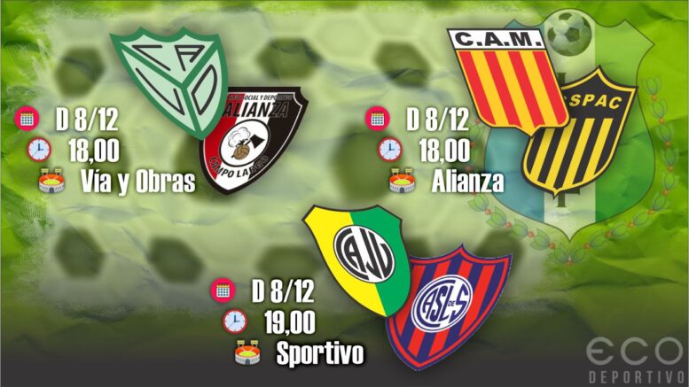 A partir de las 18, Vía y Obras (11) tendrá un duro escollo en el Deportivo Alianza (13) pero también una oportunidad única de volver a la cima del grupo ante un rival directo, en compromiso controlado por Juan Silva, Saúl Rojas y Leonel Silva. En el mismo horario, en cancha de Alianza, se medirán La Montenegrina (1) y Sportivo Pampa (12), controlados por Rafael Rollhauser, José Casasola y César Acosta.