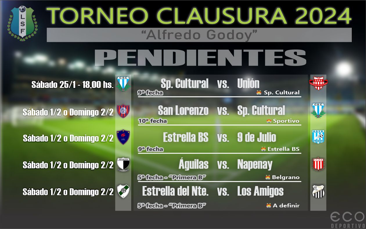 El sábado 25 empezará oficialmente la temporada 2024 con el enfrentamiento de Sportivo Cultural y Unión, que completarán en Castelli la novena fecha del Torneo Clausura “Alfredo Godoy”, que solo se había jugado dos minutos cuando se abatió un fuerte temporal que obligó a suspender. En la semana siguiente se jugarán otros cotejos pendientes, y el segundo fin de semana de febrero volverá la competencia íntegra con la undécima fecha.