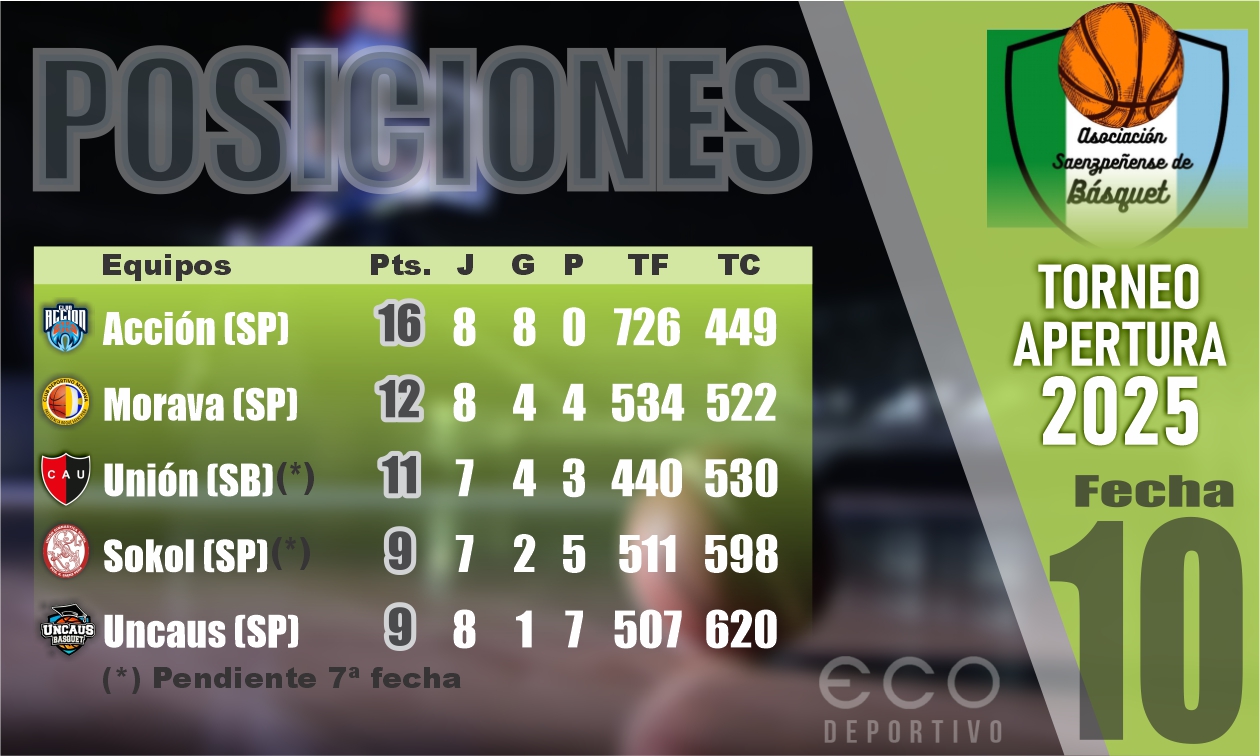 Desplegando un buen juego durante buena parte de su desarrollo, Unión venció en San Bernardo a la Uncaus por 71 a 59 y se aseguró el tercer lugar en la fase regular y la clasificación a semifinales al disputarse la décima y última fecha de la fase regular del Torneo Apertura de la Asociación Saenzpeñense de Básquet.