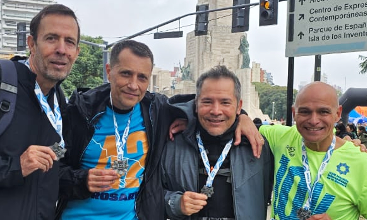 Los corredores de la Termal son parte de un equipo que comparte la pasión por el running desde sus tiempos de alumnos del secundario. La competencia tuvo la tradicional extensión de 42 kilómetros y un trayecto integrativo de 10 kilómetros, con punto de partida y arribo en el emblemático Monumento a la Bandera.