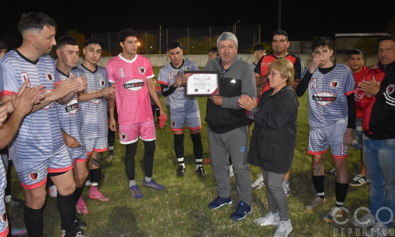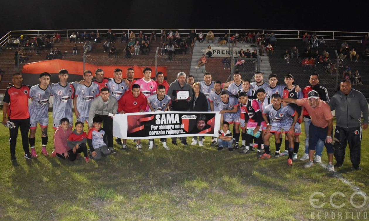 Directivos, plantel y cuerpo técnico de Aprendices Chaqueños tributó un justo reconocimiento a Diego Armando Samaniego, simpatizante “rojinegro” que falleció el pasado 20 de agosto a los 45 años. Previo al partido se realizó un minuto de silencio en su honor, y luego se entregó un recordatorio a sus padres.