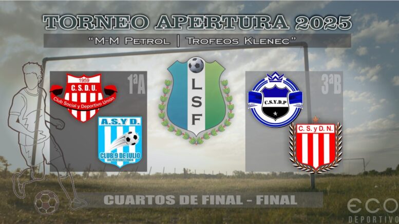 Hoy se conocerá el primer semifinalista del Torneo Apertura “Manuel Segovia” de la Liga Saenzpeñense de Fútbol, en la Primera División “A”, cuando Unión reciba a 9 de Julio en compromiso revancha de cuartos de final, que será dirigido por Marcelo Caro, acompañado por Stefani Núñez y Emanuel Flores.