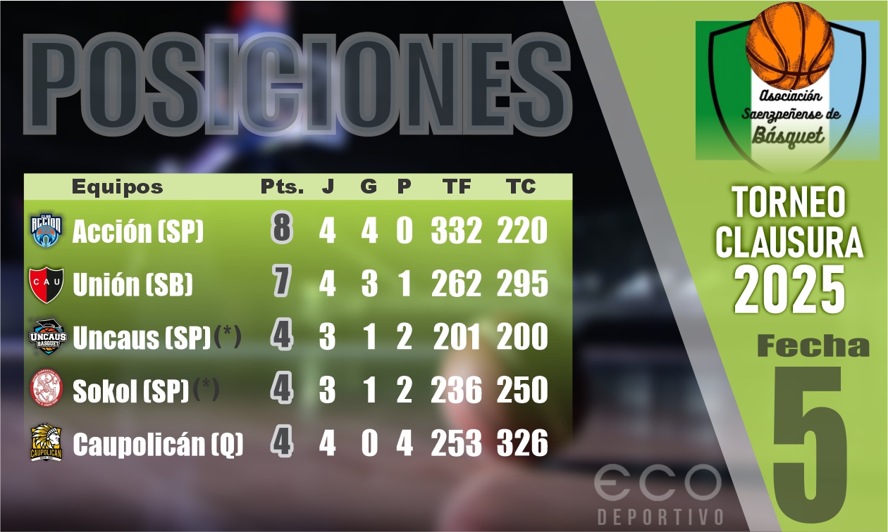 En plena etapa de recambio de su plantel, Caupolicán buscará hoy su primer triunfo en el Torneo Clausura de la Asociación Saenzpeñense de Básquet cuando a las 22 reciba a Sokol en partido que pondrá en marcha la sexta fecha, primera de las revanchas. Los jueces serán Danilo Chamorro y Elvio Vera.