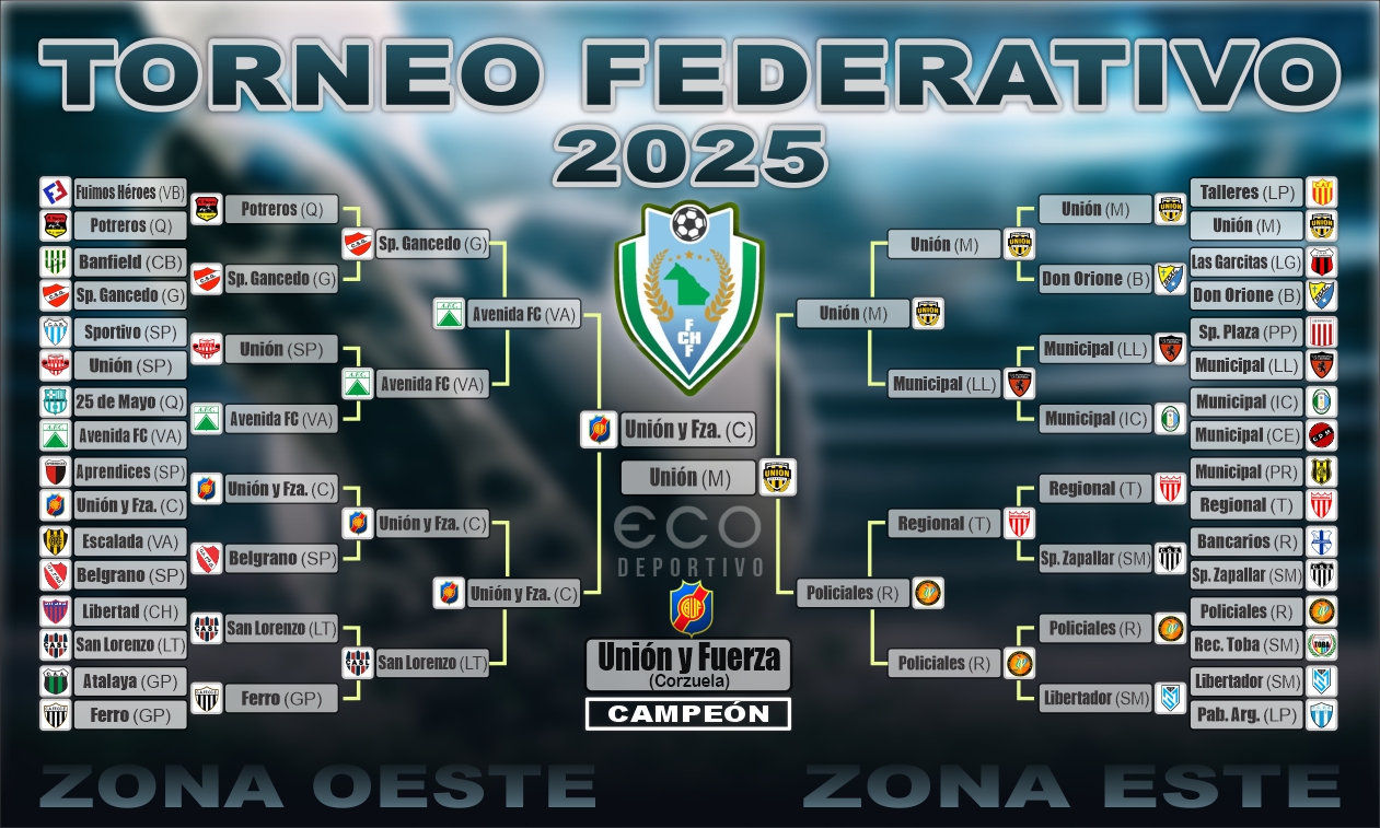 El Torneo Federativo “Mirco Marián” 2025 consagró campeón a Unión y Fuerza, tras una victoria dramática sobre Unión de Machagai por 4 a 3 en la final revancha que se jugó en Corzuela. Carlos Galarza, César Sotelo, Leo Diloff y Enzo Castaño anotaron para el “tricolor”; y Adrián Luque y Federico Monzón (2) para el “aurinegro”. Los dos clasificaron para jugar el próximo Torneo Regional Federal Amateur.