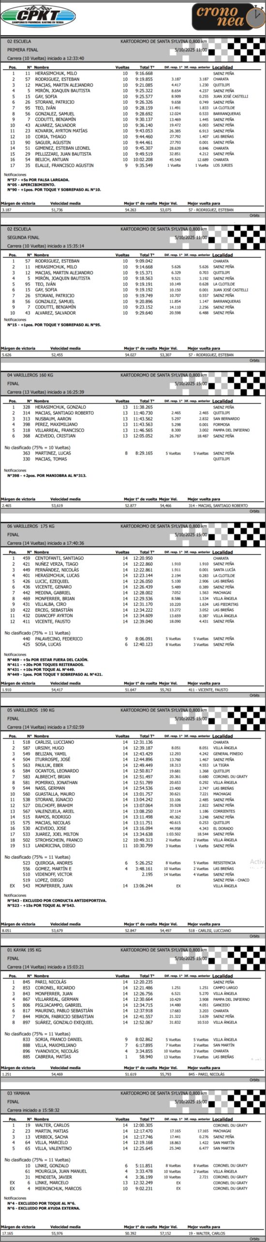 Aunque varias clasificaciones quedaron en suspenso al finalizar la jornada, y fueron confirmadas horas después, la sexta fecha del Campeonato Provincial de Karting en Tierra ofreció un gran espectáculo en cada categoría que pisó el trazado del Club Deportivo Comercio de Santa Sylvina.