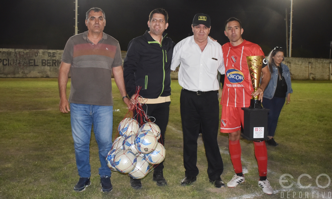 Nando Encina, de la firma M-M Petrol, entregó las pelotas al capitán del campeón, acompañado por el presidente de la LSF, Néstor Salto, y el vicepresidente de Belgrano, Sebastián Paskván