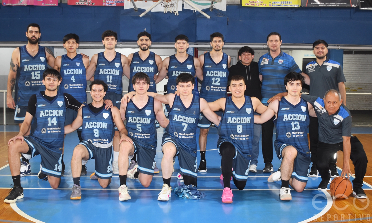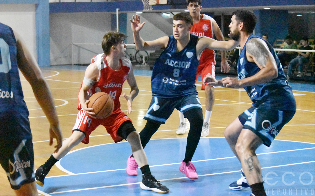 En el estadio de calle Laprida, Acción ratificó su favoritismo y derrotó sin complicaciones a la Unión Gimnástica Sokol 108-53, con Thiago Monzón de los “halcones” como goleador del juego con 23 anotaciones. En el celeste se destacaron Santiago Gauna y Cristian Ortiz, ambos con 16.
