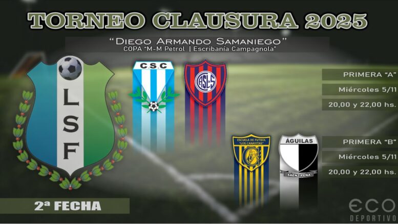 Sportivo Cultural y San Lorenzo se verán las caras hoy a las 22, en Juan José Castelli, para dar continuidad a la segunda fecha del Torneo Clausura “Diego Samaniego” de la Liga Saenzpeñense de Fútbol. Por la B se medirán Canayitas y Águilas, en Belgrano.