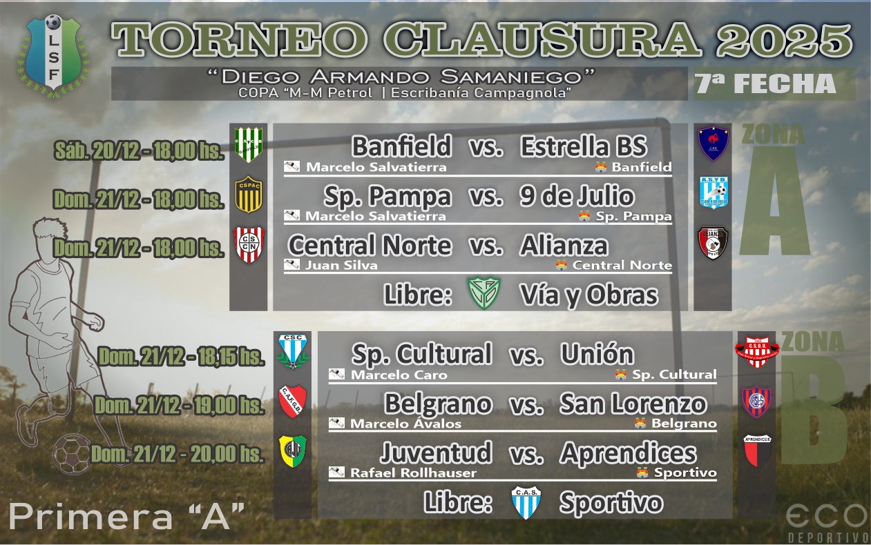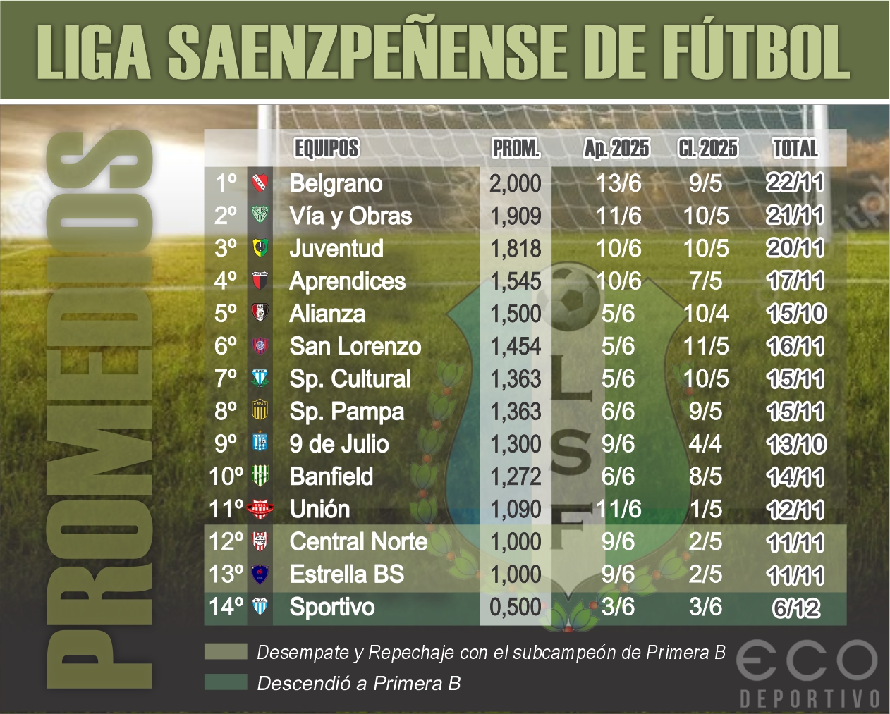 La jornada que marcará el cierre de la fase regular tendrá varios puntos de atracción en el campeonato de la Liga Saenzpeñense de Fútbol, no solo por los puestos de arriba que definirán los clasificados a cuartos de final, sino también en las posiciones de abajo en el sistema de puntuación de los dos campeonatos de la temporada.