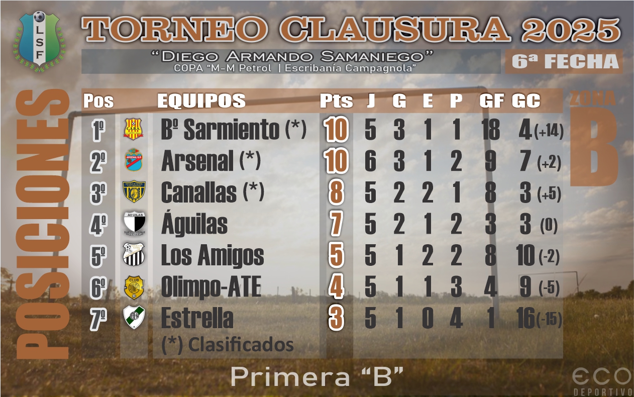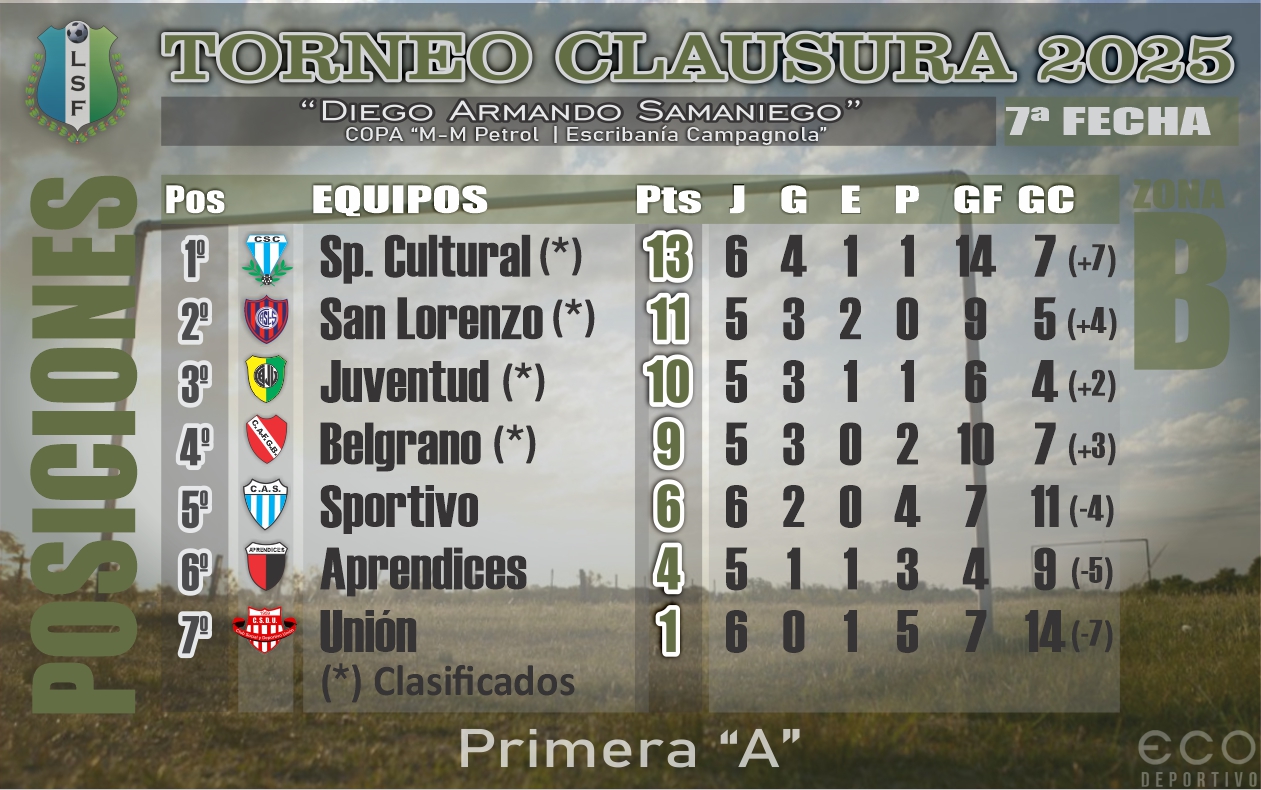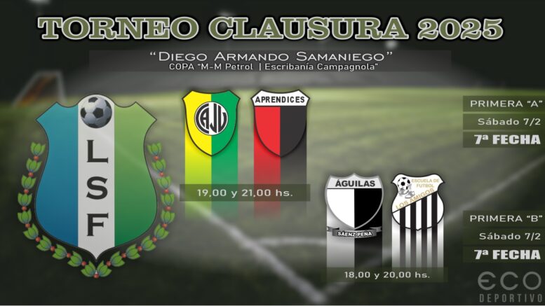 Con los enfrentamientos de Juventud ante Aprendices, por la División A, y de Águilas frente a Los Amigos, correspondiente a la División B, continuará este sábado la disputa de la séptima fecha del Torneo Clausura “Diego Armando Samaniego” de la Liga Saenzpeñense de Fútbol.