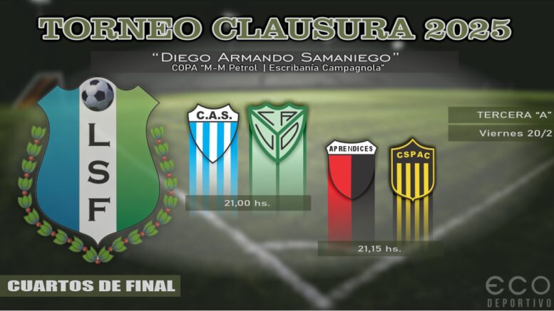 Los enfrentamientos de Sportivo ante Vía y Obras, y Aprendices con Sportivo Pampa confirmarán este viernes los primeros semifinalistas del Torneo Clausura “Diego Armando Samaniego” de la Liga Saenzpeñense de Fútbol en tercera especial de la División “A”.