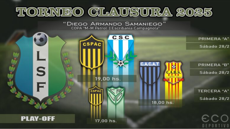 Con los partidos de Sportivo Pampa frente a Cultural (primera) y ante Vía y Obras (tercera), arrancarán las semifinales del Torneo Clausura “Diego Armando Samaniego” de la Liga Saenzpeñense de Fútbol en la División A; y Centro con Barrio Sarmiento iniciarán los cuartos de final en Primera B.