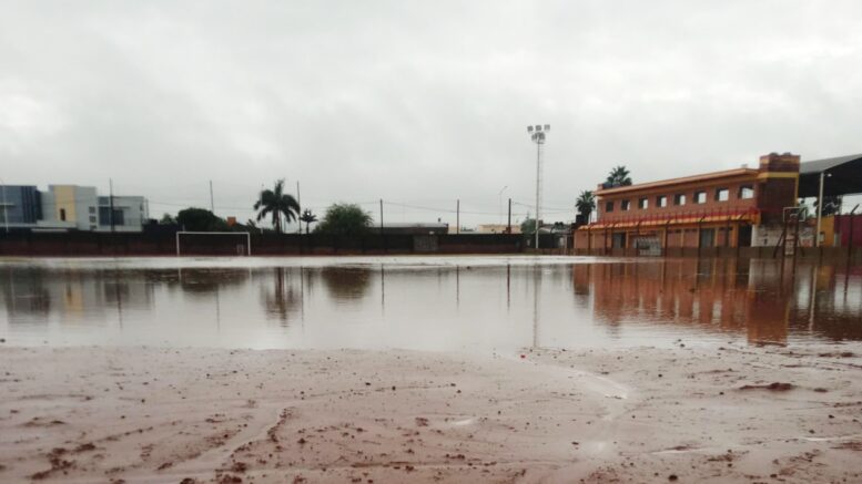 El alto milimetraje de lluvia que se registró en la ciudad cabecera del Departamento Güemes anegó considerablemente el campo de juego del Club Barrio Sarmiento, y en consecuencia se debió posponer el juego frente a Napenay, que será reprogramado en la noche de este lunes en la reunión liguista.